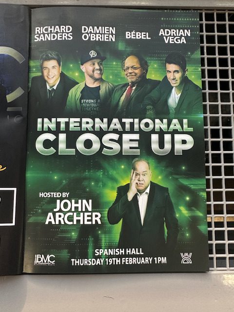 De dealerruimtes zijn zoals altijd weer fantastisch, je komt om de paar minuten een bekend gezicht tegen en de demonstraties zijn geweldig om te zien. Nu zitten we klaar voor de eerste International Close Up show. Presentatie door John Archer, in de show Richard Sanders, Damien O’Brien, Bébel en Adrian Vega. Damien was nog steeds slecht te verstaan, was ook zeker niet geweldig, een hoop gerommel en gefrommel. Bébel! Een staande ovatie en wat een enorm verdiende staande ovatie! In een woord ongelofelijk wat we de afgelopen minuten hebben gezien, fantastisch.